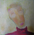 Serie van 6 koppen op mdf-paneeltjes met lijstjes aan de achterkant. ik heb laag over laag gewerkt tot zich als vanzelf patronen vormen. Deze heb ik verder uitgewerkt.